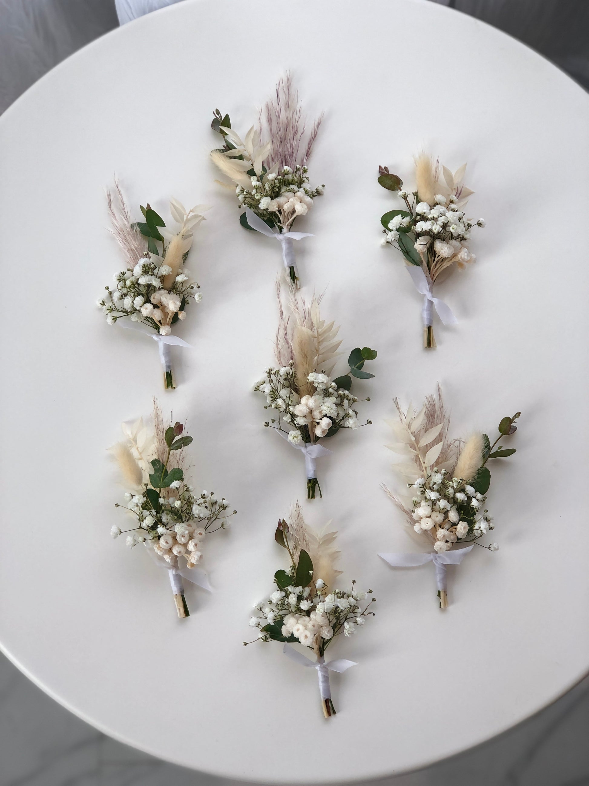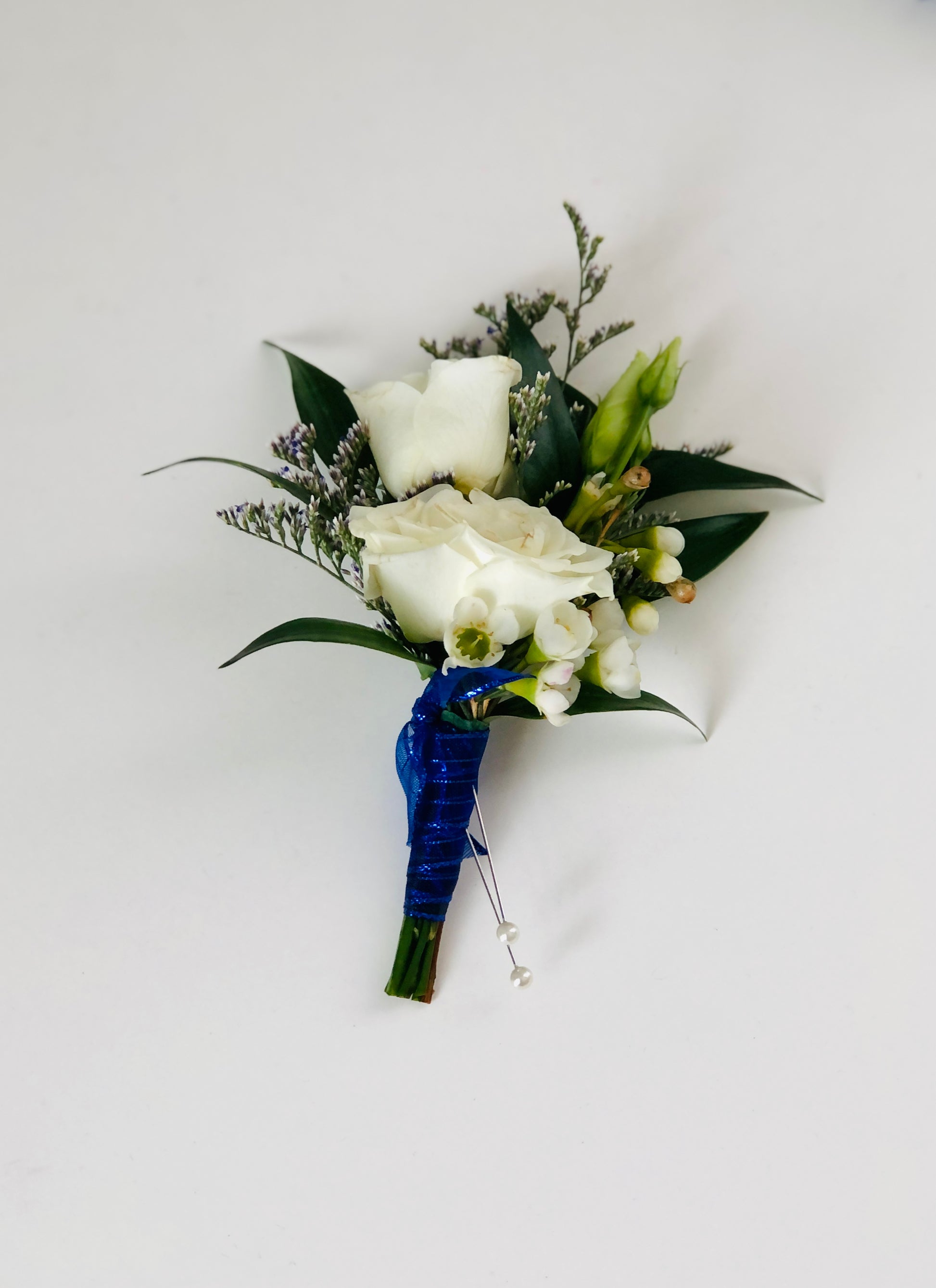 This timeless boutonniere is handcrafted with fresh, premium flowers and natural greenery for a clean, elegant look. Designed to complement weddings, proms, and other special occasions, it adds a refined finishing touch to any suit or tuxedo. Each boutonniere is carefully finished with a satin ribbon wrap and includes a pin for secure, easy wear.